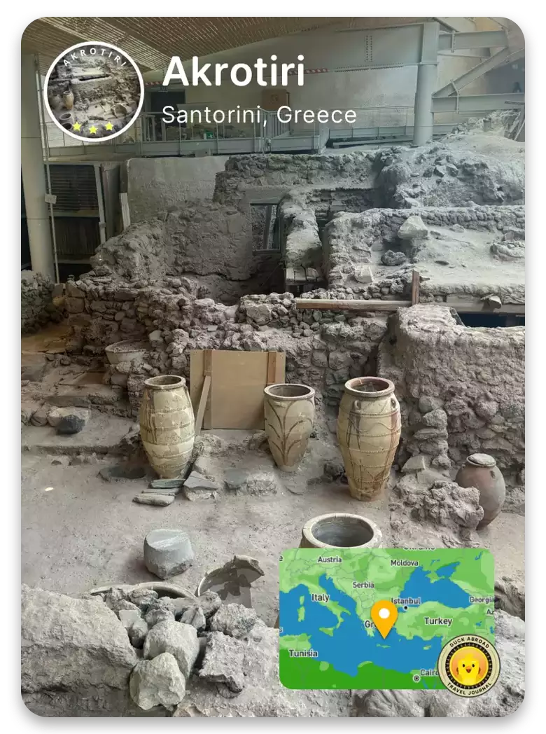 The town was buried under volcanic ash after a massive volcanic eruption in the 17th century BC. This eruption destroyed much of the island but preserved Akrotiri in remarkable condition, similar to how Pompeii was preserved in Italy. The ash protected the town’s buildings, artwork, and everyday items, giving us an incredible look at how people lived thousands of years ago.