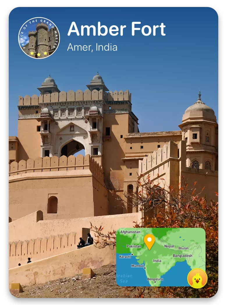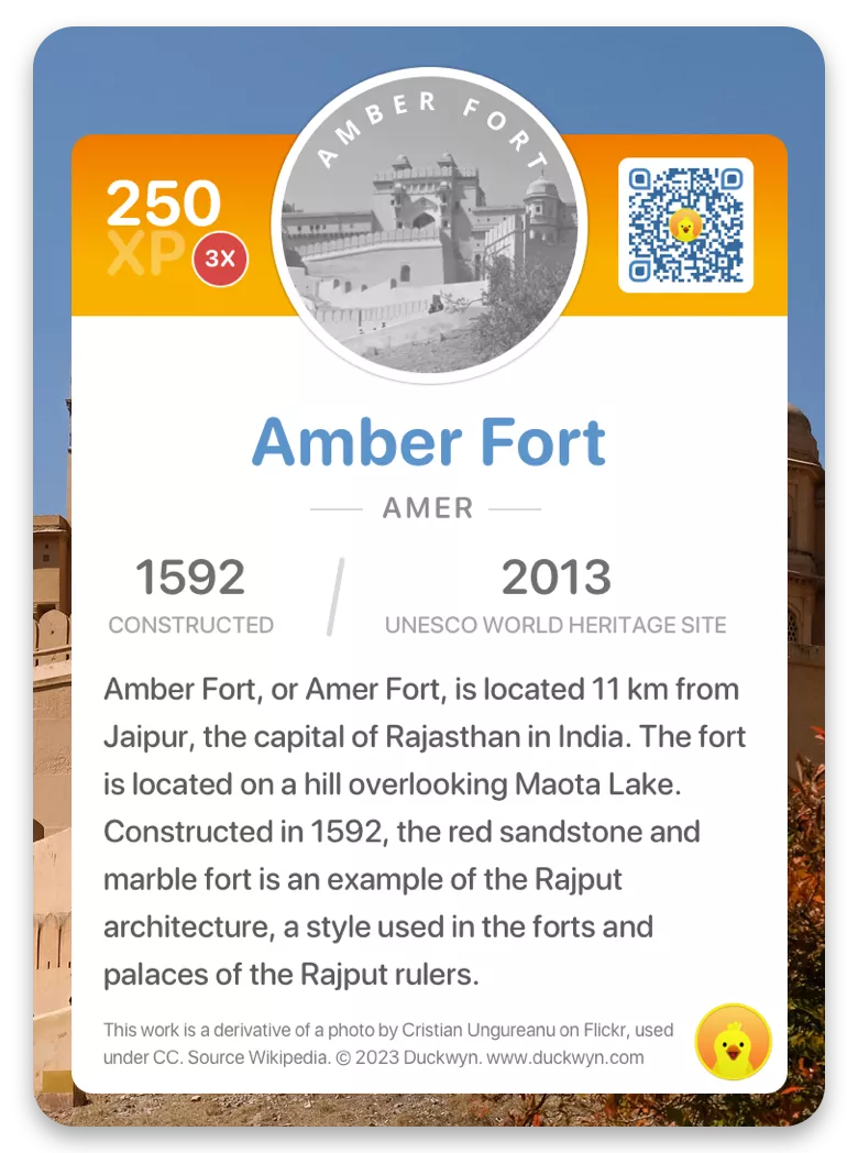 Amer Fort or Amber Fort is a fort located in Amer, Rajasthan, India. Amer is a town located near Jaipur, the capital of Rajasthan. Located high on a hill, it is the main tourist attraction in Jaipur. Amer Fort is known for its artistic style including its large ramparts and series of gates and cobbled paths. The fort overlooks Maota Lake, which is the main source of water for the Amer Palace.