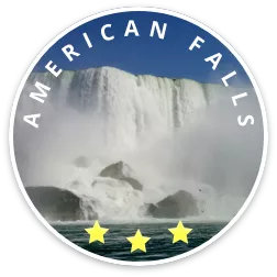 American Falls is a cataract waterfall located in New York along the border of the United States and Canada. A cataract waterfall is a large and powerful waterfall with only one down pouring location. American Falls is the second largest of the three waterfalls that make up Niagara Falls, and falls completely within the United States, unlike the larger Horseshoe Falls which falls two-thirds within Canada and one-third within the United States.
